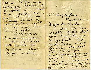 The steamer will (??????) that it was almost impossible to write so I didn’t try. Everybody seems to be writing for we are due at Queenstown tomorrow about 8am and Liverpool in the evening. Even now I am writing under difficulties for the tables are all occupied and I am writing on a newspaper in my lap. We have had no storm only a steady roll of the steamer.  I can stand that first rate, but I don’t like the pitching of the ship which bothers me. Thursday I am half inclined to think that I shall stop at Queenstown and go through Ireland to Glasgow and Edinborough, Scottland and then down to London without going to Liverpool.  A fellow on board who rooms with Walter Catlin a year in Chicago thinks of doing it with me. If so we won’t get to London until the first of next week. Last evening some of us attended a concert given by the second cabin people in their dinning room. Every day has been pleasant and I have been awakened every morning by the sun shining though the porthole in the room which I have alone, being on the south side of a steamer going this way. I have met several very pleasant people on the trip, but I am not fond enough of the sea to wish the journey to continue much longer. In fact I am quite ready to land. I hope you are improving, but I suppose I won’t hear until I get to Paris.  I wish now that I had told you to send the first letter to London, but you see I didn’t expect to go through Ireland. One of the weeks I am to be away is gone. I would like to look in on upon you and take you out to ride with Bess. You must go out oftener and keep me informed how you are when communication is once established it will seem better, although there will be some time between the time the letters are written and received.